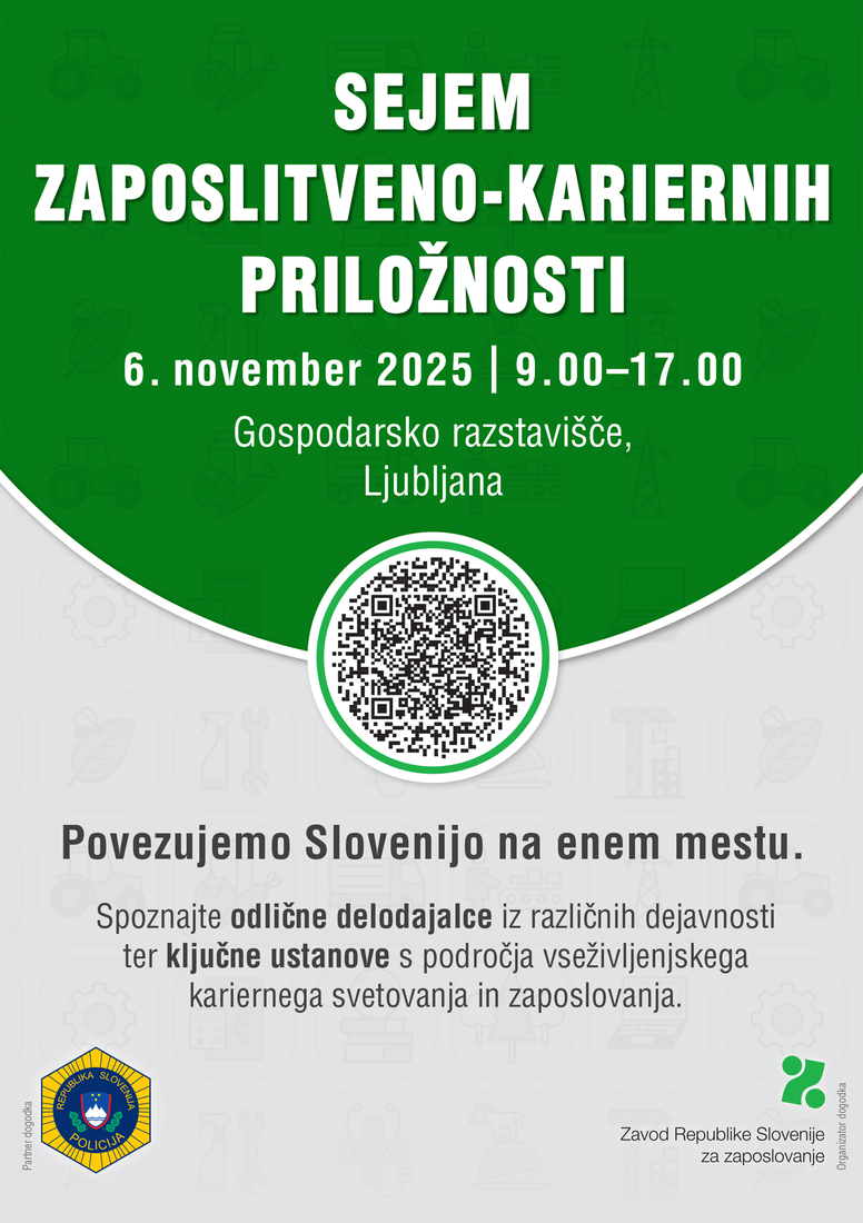 Spoznali boste priložnosti za zaposlitev v Policiji. Predstavljene bode številne karierne priložnosti, ki jih nudi ta zanimiv in plemenit poklic, saj zahteva odgovornost ter pogum, predvsem pa pripravljenost in srčnost pomagati ljudem ter poskrbeti za varnost skupnosti. Na voljo bodo tudi informacije glede možnosti kariernega razvoja, napredovanja ter poteka šolanja. V živo se bodo predstavili policisti različnih smeri, med njimi tudi policisti na konjih, s službenimi psi ipd. |