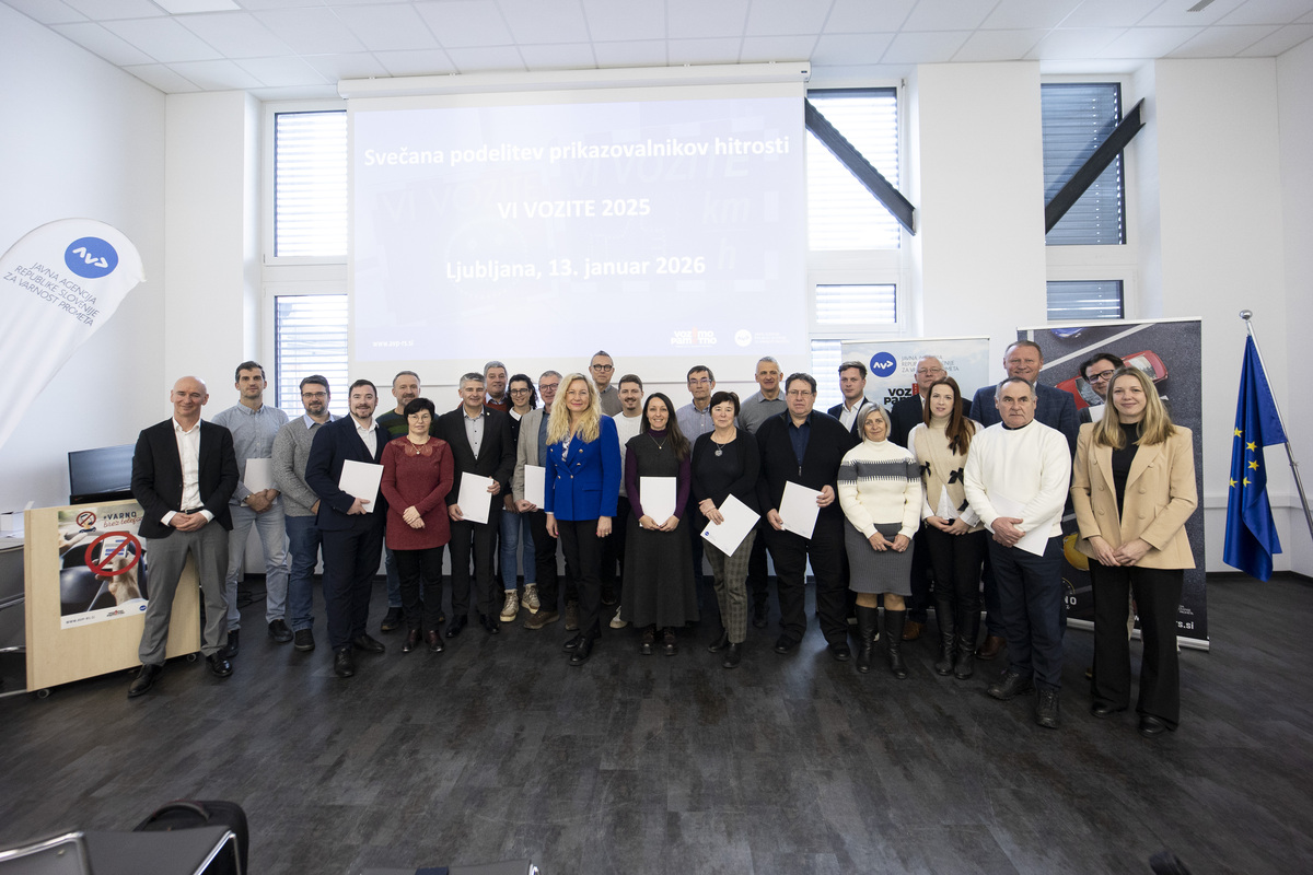 Prehitra vožnja kljub številnim preventivnim aktivnostim ostaja najpogostejši vzrok prometnih nesreč z najhujšimi posledicami. V letu 2025 je bila neprilagojena hitrost na slovenskih cestah vzrok za 3.711 prometnih nesreč, v katerih je umrlo 36 ljudi (v letu 2024: 30), 387 udeležencev pa je bilo huje telesno poškodovanih. Policija je v letu 2025 ugotovila 122.861 kršitev hitrosti (v 2024: 120.553), kar ponovno potrjuje, da je spoštovanje omejitev hitrosti eden ključnih izzivov prometne varnosti – še posebej v naseljih. Z namenom umirjanja prometa in zaščite ranljivejših udeležencev je Agencija za varnost prometa (AVP) 15 občinam podelila prikazovalnike hitrosti »Vi vozite« v brezplačni desetmesečni najem. Prikazovalniki so bili izbranim občinam dodeljeni na podlagi javnega poziva, ki ga je AVP v sodelovanju s podjetjema Intermatic in Sipronika objavila že 15. leto zapored.