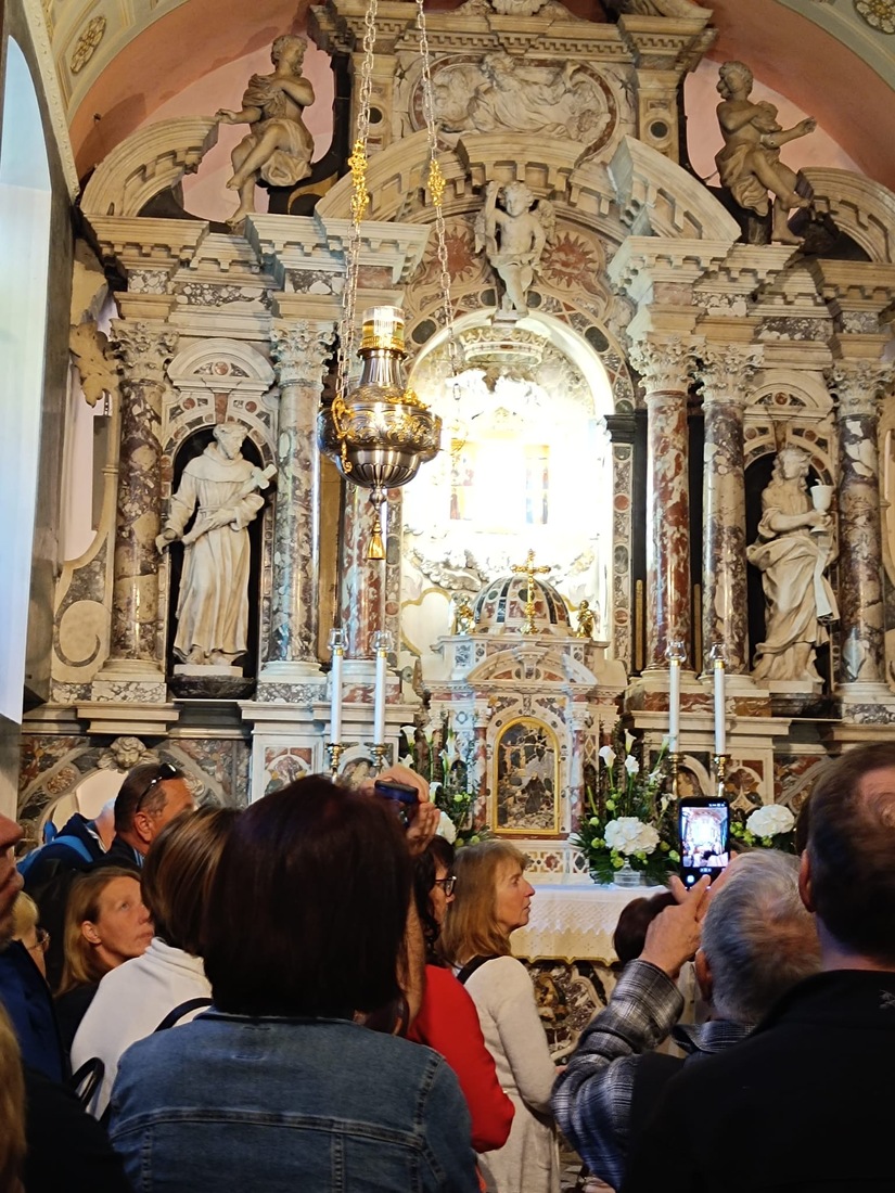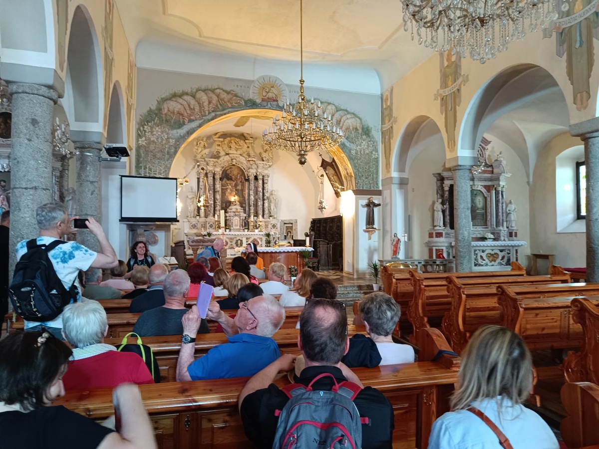 Ustanova Petra Pavla Glavarja, župnija Komenda in Aritours so v soboto, 18. 4. 2026, peljali župljane Komende na romanje na Trsat, Reko in Kastav v spomin in zahvalo Petru Pavlu Glavarju, ki je na Trsatu daroval novo mašo ter drugim Slovencem, ki so s svojo vero, mislijo in delovanjem zaznamovali reški prostor. Najprej smo obiskali mogočno romarsko baziliko Svete Device Marije, eno najpomembnejših marijanskih svetišč na Hrvaškem. Trsat ima izjemen pomen že od 13. stoletja, ko naj bi se tam po izročilu čudežno pojavila nazareška hišica. V baziliki ima posebno mesto slika Milostne matere, ki naj bi jo naslikal Sveti Luka. Zaradi izkazane časti je bila slika okronana s pravo zlato krono. Ogledali smo si še kapelo votivnih darov. V njej so shranjeni številni darovi vernikov, ki pričajo o čudežih in izražajo njihovo hvaležnost Materi Božji Trsatski. Sledila je maša, ki jo je daroval duhovni vodja romanja p. Cristian Balint, komendski župnik, ki je ravno prejšnji dan obeleževal 22 let mašniškega posvečenja. Za obletnico so mu čestitali predsednik Ustanove Petra Pavla Glavarja Štefan Petkovšek, ki mu je ob tej priliki namenil lepo misel o pomenu duhovne službe, in tudi ostali romarji.