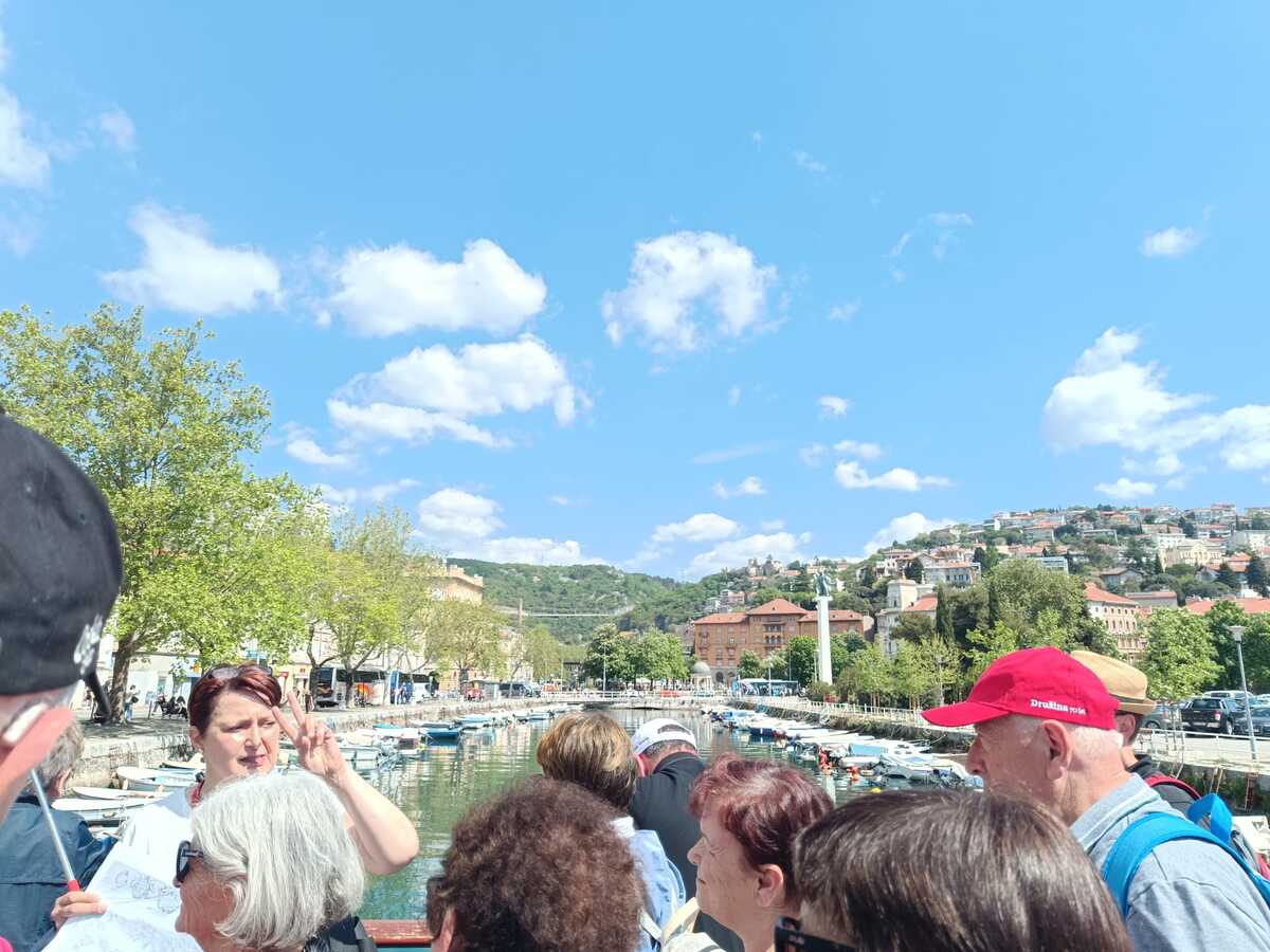 Z avtobusom smo se nato odpravili proti mestu Reka, ki jo je predvsem v 20. stoletju zaznamovala zelo burna zgodovina, saj je večkrat zamenjala državno pripadnost, kar kaže na njen pomemben strateški in politični položaj ob Jadranu. Reka je bila skozi zgodovino pomembno pristanišče in stičišče različnih narodov, med njimi tudi Slovencev. Kot večkulturno okolje ohranja spomin na ljudi različnih narodnosti, ki so prispevali k njenemu razvoju. Tako so s poimenovanjem ulice po Janezu Trdini v centru mesta na ta način dali priznanje njegovemu delu in njegovi povezavi z mestom. Med sprehodom po mestu smo si ogledali večje reške znamenitosti: Korzo, grajski stolp z mestno uro, Cerkev Marijinega vnebovzetja s stolpom, Katedralo Svetega Vida, Reško tržnico, Hrvaško narodno gledališče Ivana Zajca itd.